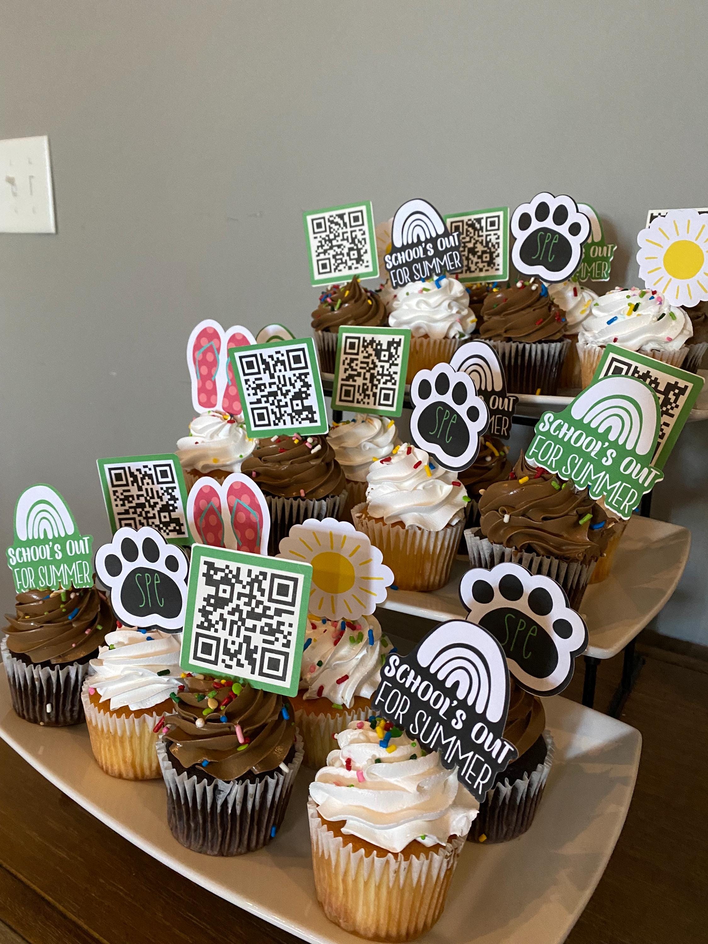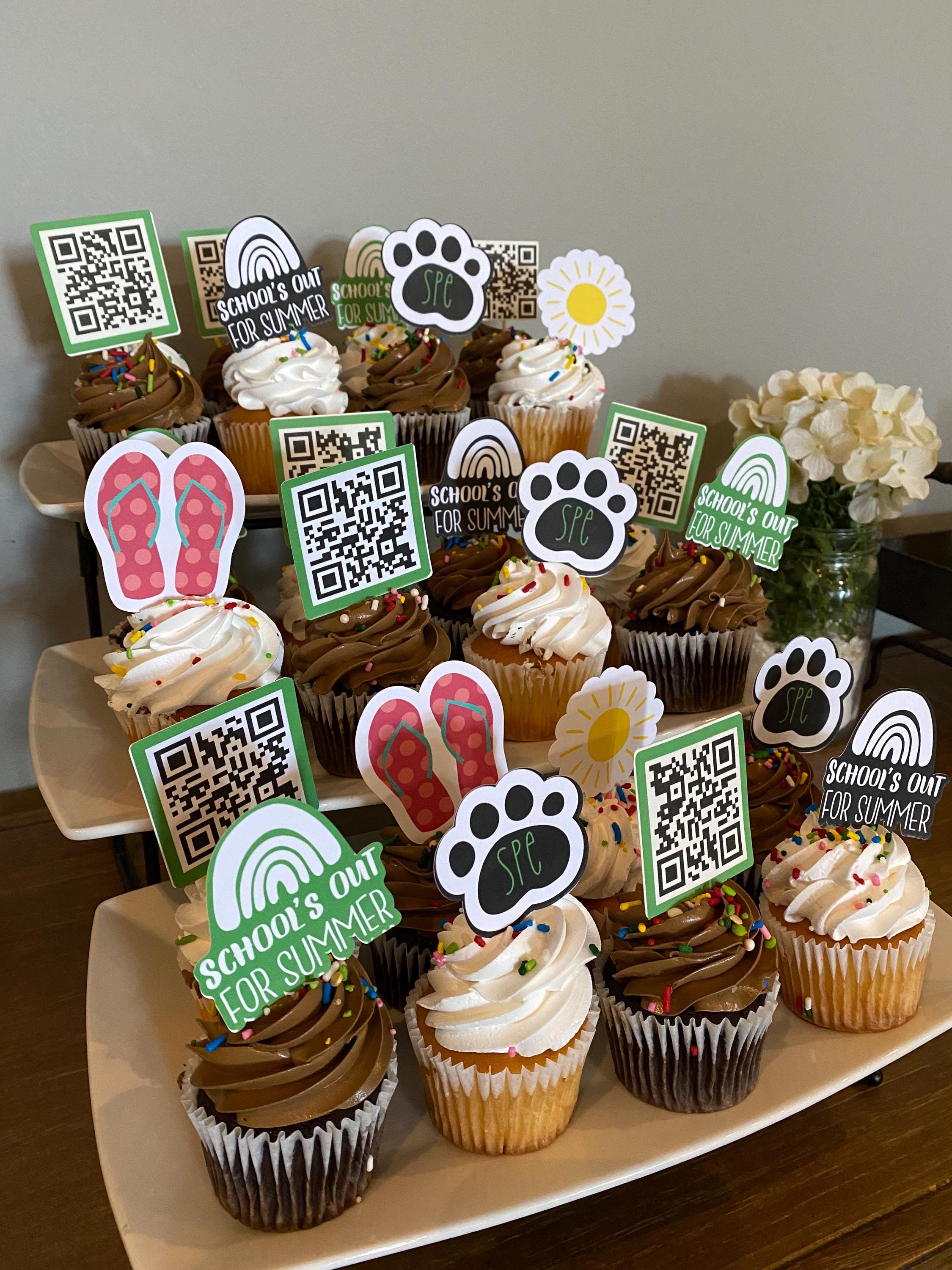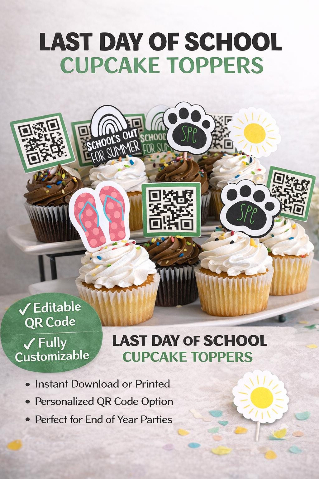 Last Day of School Cupcake Toppers | Summer Party Decorations, Custom QR Code